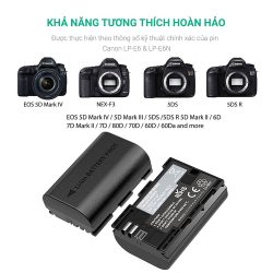 Bộ pin RAVPower RP-BC003 tương thích hoàn toàn với các model phổ biến của Canon sử dụng pin LP-E6 & LP-E6N như EOS 5D Mark IV / 5D Mark III / 5DS / 5DS R / 5D Mark II / 6D / 7D Mark II / 7D / 80D / 70D / 60D / 60Da…