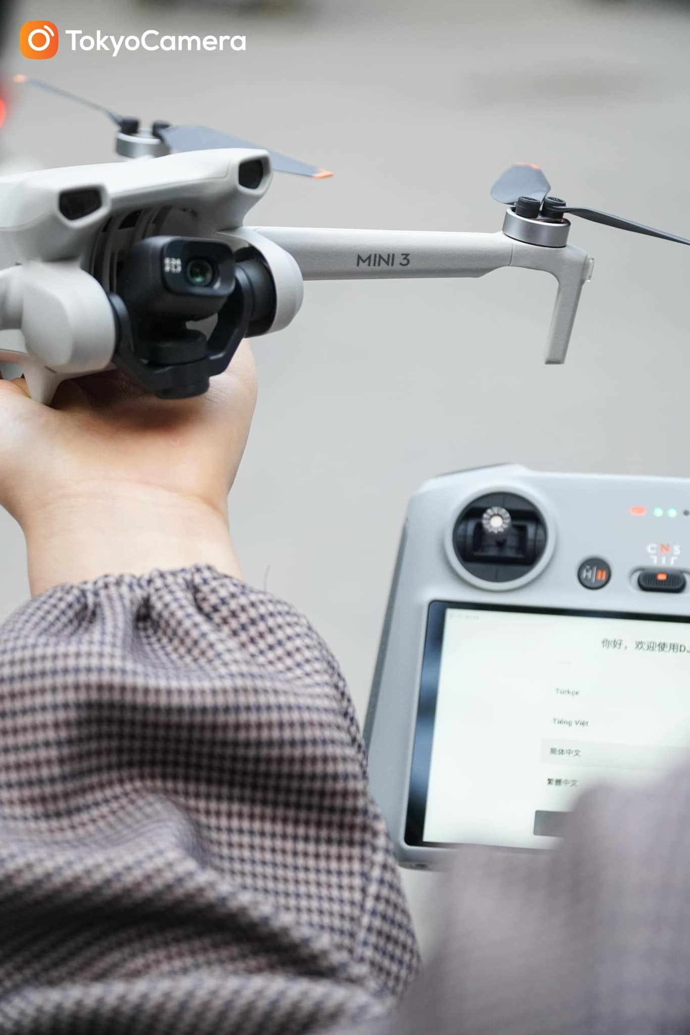 DJI Mini 3 kết hợp vs tay điều khiển DJI RC (có màn hình) (Ảnh: Tokyo Camera)