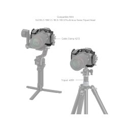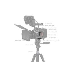 Trong đó, lỗ định vị ARRI 3/8″-16 hỗ trợ Tay cầm trên 3765 / 2165C và Giá đỡ màn hình 2903B; lỗ ren 1/4″-20 phù hợp với Tay cầm bên 4016; giáp lạnh tích hợp giữ micro, đèn LED video; và các lỗ cho dây đeo vai & cổ tay hoạt động với Dây đeo tay 3848 hoặc Dây đeo vai PSC2428. Có một đế Arca-Swiss tích hợp ở dưới cho các gimbal DJI RS 2 / RSC 2 / RS 3 / RS 3 Pro hoặc tripod loại Arca để chuyển đổi nhanh chóng giữa chế độ cầm tay, gimbal và tripod cũng như một gắn QD cho khóa dây đeo vai tháo lắp nhanh. Ngoài ra, một cây cờ lê hai đầu được bao gồm để lắp ráp và tháo rời dễ dàng.