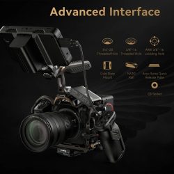Ngoài việc có một gáy giày gắn có thể tháo rời, một thanh ray NATO bên hông và nhiều lỗ ren phụ kiện 1/4″-20 và 3/8″-16, bộ khung còn tích hợp các lỗ định vị kiểu ARRI để ngăn phụ kiện xoay khi lắp đặt. Cũng có một cổng QD (Quick Detach) và các khe đeo dây cho thêm nhiều tùy chọn. Bộ khung còn có một tấm đế nhanh Arca-type tích hợp ở dưới đáy giúp dễ dàng lắp đặt trên tripod.